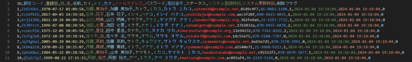 ※ 生成されるデータは架空のもので実在する個人情報ではございません。