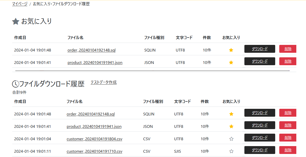 | 1ファイルあたりのデータ作成数 | 20件まで | 100件まで | 1,000件まで | 10,000件まで |